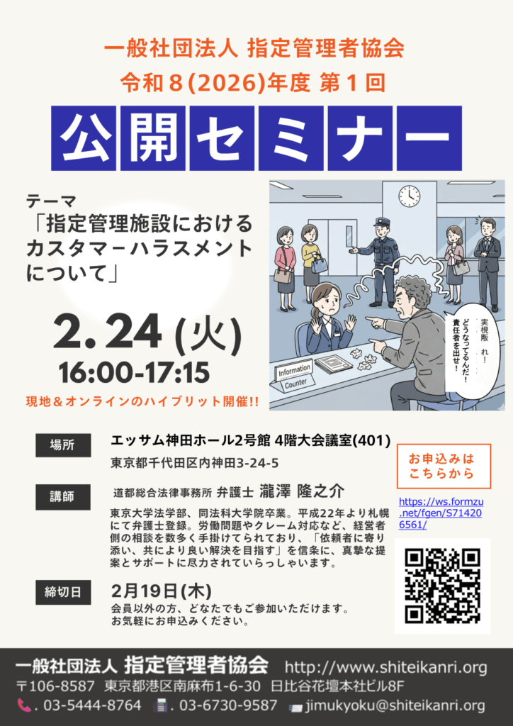 一般社団法人指定管理者協会 令和8年度 第1回 公開セミナーのご案内
